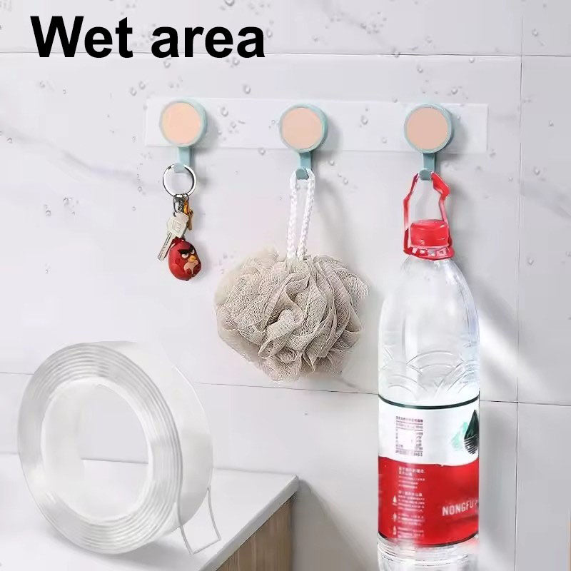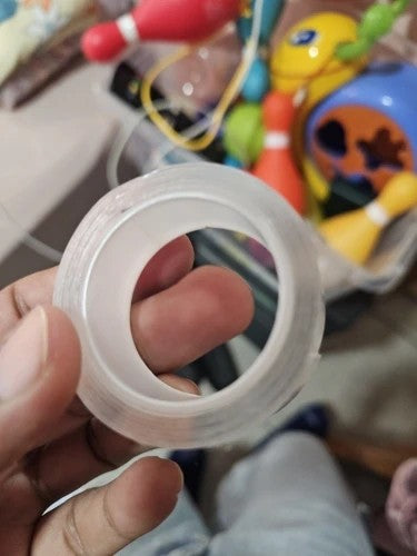 The transparent nano tape sticks firmly on smooth tiled walls, holding items securely without drilling. Nearly invisible, it keeps your space clean and damage-free—perfect for kitchens, bathrooms, or any sleek surface.