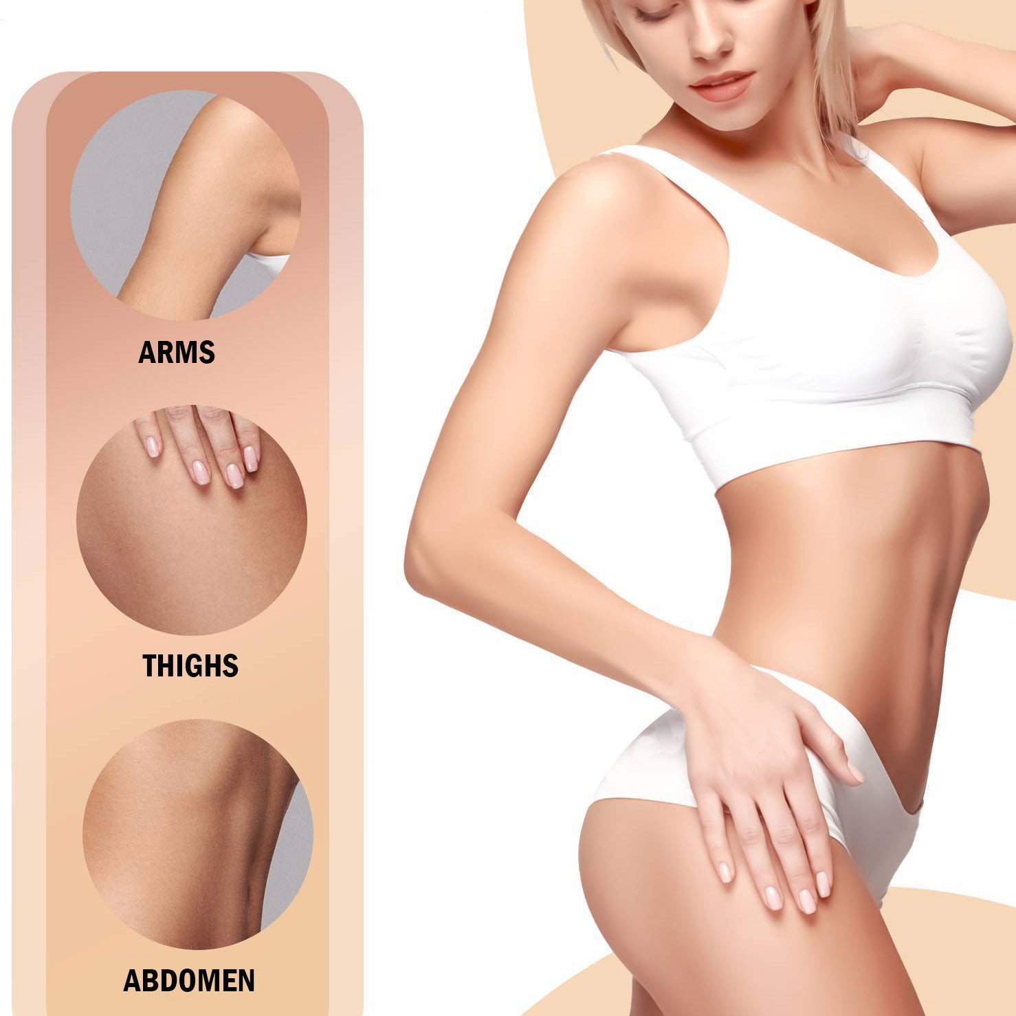 ◉ Creates natural contours on thighs, arms, stomach, or hips – perfect for everyday use or special occasions under any outfit.